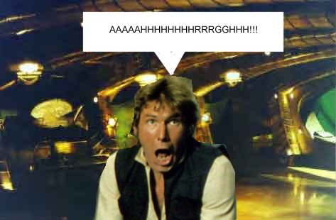 Han Solo, searching for Kermit, opens a door and makes